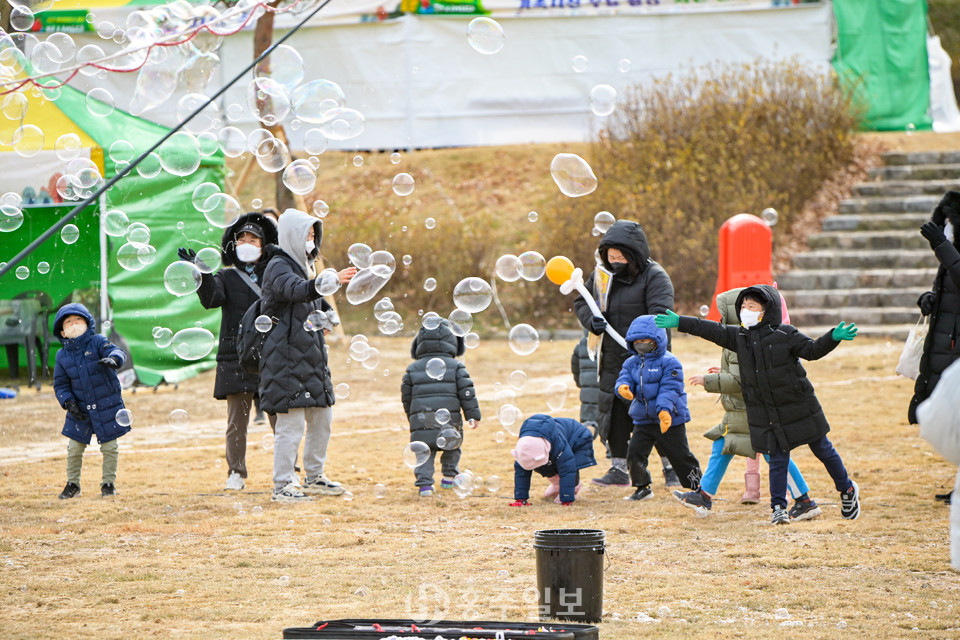 지난 4일 홍성군 문화특화사업단은 ‘여가문화 공간 조성 기념 문화 놀이터’ 행사를 개최하고 △이벤트마당(가족사진 찍어주기 이벤트, 버블쇼, 벌룬쇼) △공연마당 △체험마당(연 만들기, 풍선 만들기, 대나무 활 만들기, 비눗방울 체험) △전시마당(디카시 전시, 사진 전시, 시화 전시) △먹거리마당 △홍성사랑 희망장터 등 지역단체의 참여 속에 다채로운 프로그램을 운영했다. 사진은 비눗방울 삼매경에 빠진 어린이들의 모습.