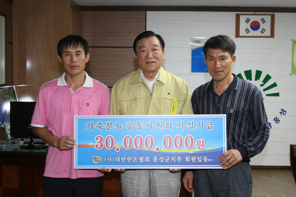 군은 기탁 받은 3000만원을 지난 21일 사업추진 주체인 홍성축협(조합장 유창균)에 전달해 사업의 원활한 추진과 인근 주민불편 해소를 위해 사용토록 했다.