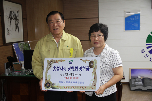 충청남도유아교육진흥원(원장 임호빈)은 지난 5월 환경부가 주최하고 한국환경공단이 주관하는 2012 친환경 안심 어린이 놀이터 공모전에서 받은 포상금 100만원을 홍성사랑장학회에 쾌척했다. 이번 포상금은 어린이들이 안심하고 건강하게 뛰어 놀 수 있는 친환경놀이터 만들기 일환의 우수 친환경놀이터 발굴 차원에서 환경부가 추진한 것으로, 충남유아교육진흥원이 친환경성, 흥미·감성유발성, 물리적 안전성, 유지관리 등 항목에서 우수평가를 받게 되면서 환경부장관상을 수상했으며, 부상으로 100만원의 포상금을 받았다.