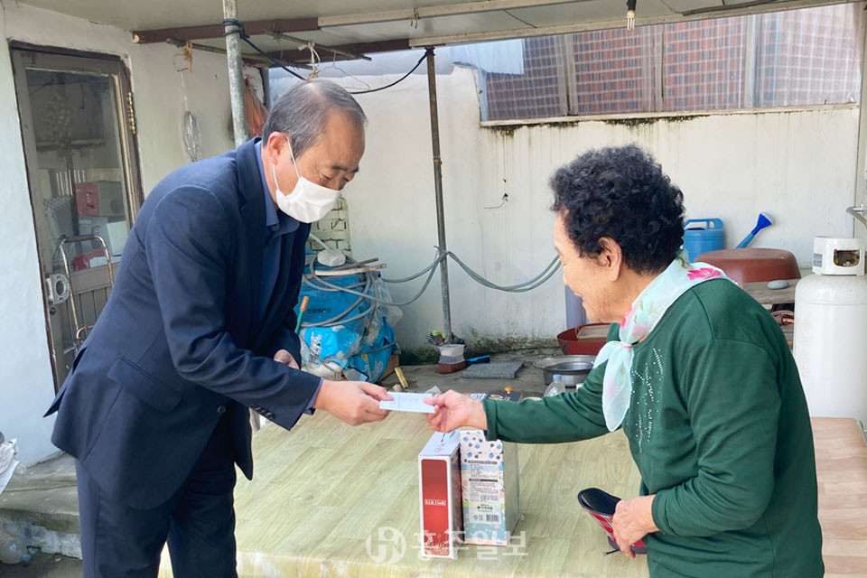이날 정동규 읍장을 비롯한 공직자들은 관내 독립유공자 유족 4명을 위문 방문해 감사의 마음을 전하고 위문품을 전달했다.