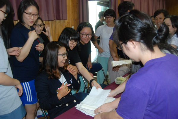 이 선수는 후배들에게 “사람마다 전성기가 있고 고비가 있다. 자신과의 싸움이 제일 중요하고 고비를 잘 넘겨야만 한다. 지금 이 순간 나만 가장 힘들다는 생각이 들 수도 있다. 그러나 열심히 하지 않으면 나중에 웃을 수 없다. 대홍성여고의 자긍심을 갖고 다들 힘든 고비를 밝게 웃으면서 넘기길 바란다”고 격려했다.