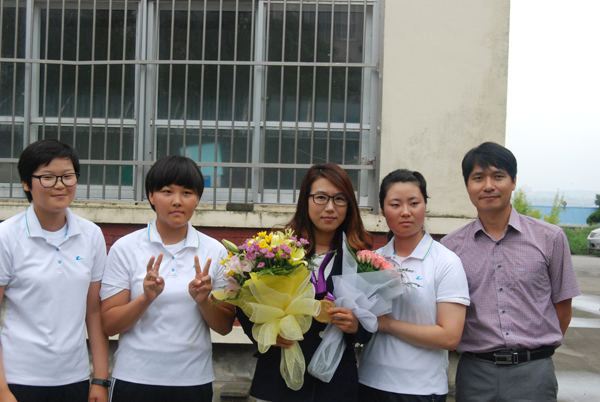 런던올림픽 양궁 단체전에서 금메달을 목에 건 홍성여고 출신 이성진(28. 전북도청) 선수가 지난 16일 오전 모교를 방문해 후배들로부터 뜨거운 환영을 받았다.