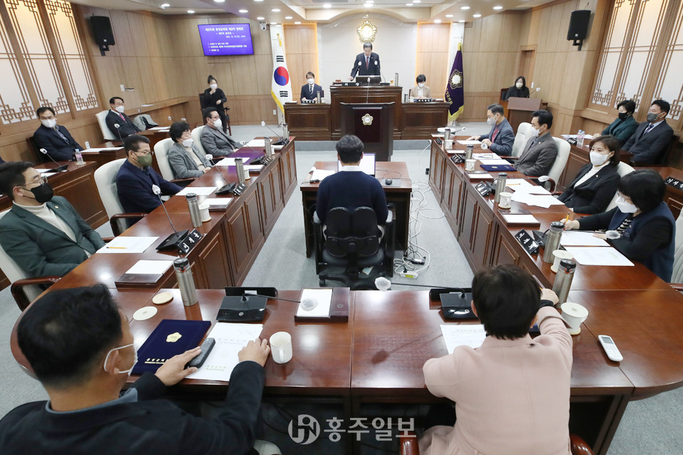 홍성군의회(의장 이선균)는 12일 제291회 제2차 정례회 제9차 본회의를 개최하고 홍성군의회 사무기구·사무분장 규칙 일부개정규칙안, 2022년도 제3회 추가경정예산안 및 제2회기금운용계획 변경 안 등을 처리했다.<사진>
