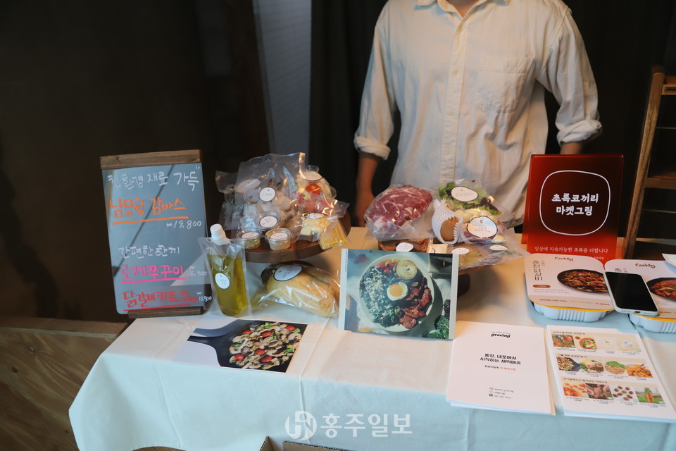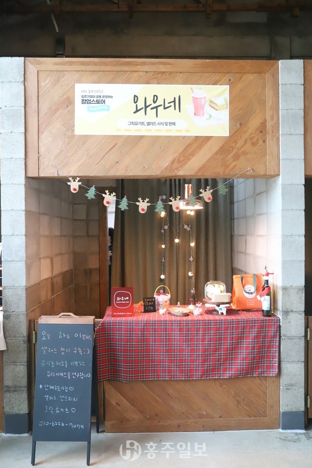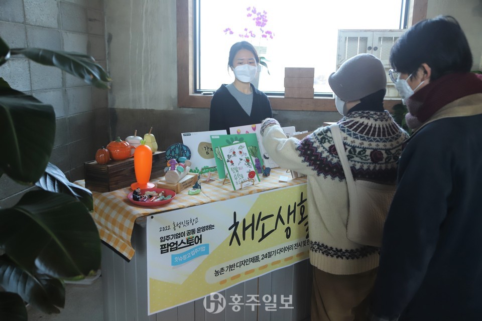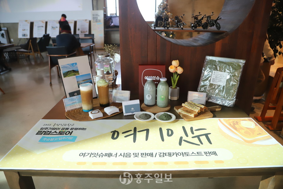 행사장에는 △감태 카야토스트 판매, 여기잇슈페너 시음 및 판매(여기잇슈) △오서산, 백월산, 용봉산 룸스프레이 체험 및 판매(플로우온플로어) △그릭요거트, 샌드위치 시식 및 판매(와우네) △홍성 생산물을 활용한 밀키트 판매(초록코끼리) △농촌기반 디자인제품, 24절기 다이어리 전시 및 판매(채소생활) 등 다양한 부스가 마련됐으며 시제품 설문조사 참여자를 대상으로 선착순 무료 체험 이벤트도 함께 진행됐다.