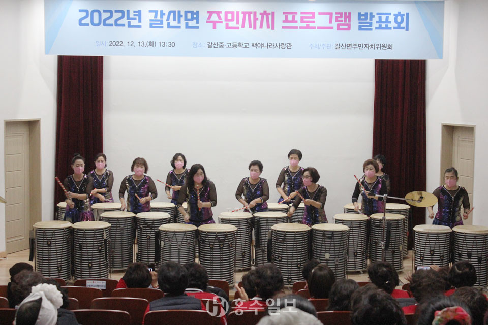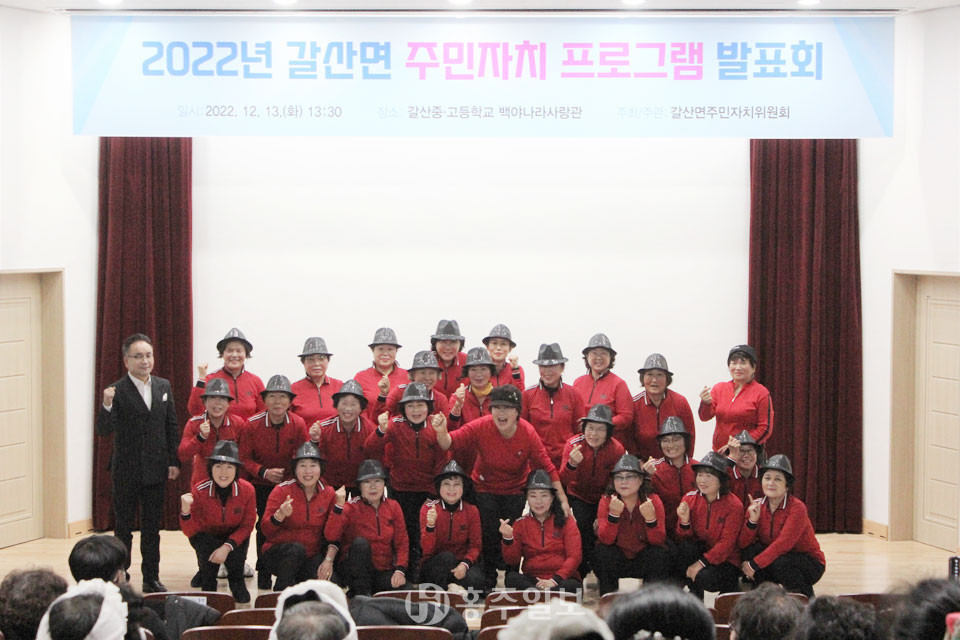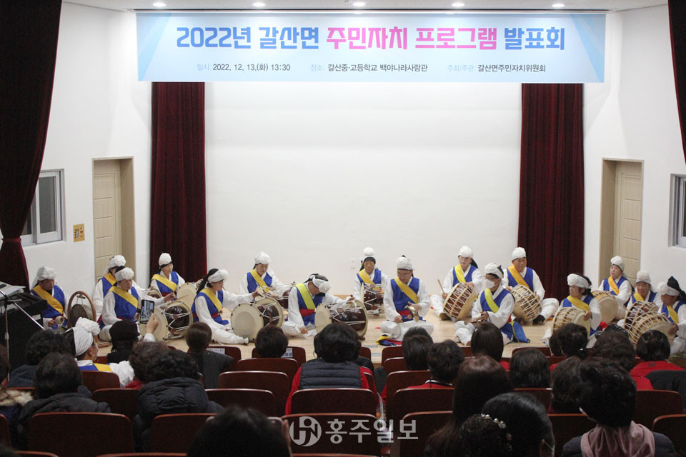 2022년 갈산면 주민자치 프로그램 발표회가 지난 13일 갈산중·고등학교 백야나라사랑관에서 열렸다.<사진>