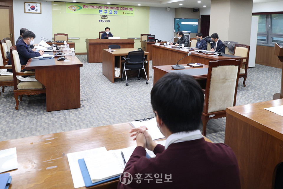 이 연구모임은 충남도 내에 프로야구단을 유치할 경우 예상되는 경제적 효과를 연구·분석하기 위한 모임으로, 이날 3차 회의에는 이종화 의원(홍성2·국민의힘)을 비롯해 도의원, 교수, 전문가 등 8명이 참여했다.