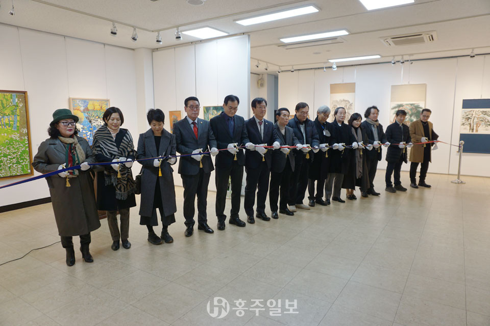 이날 개막식에는 이영복 화백을 비롯한 초대 출향작가들과 이들을 맞이하기 위해 이용록 홍성군수, 장재석 군의회 부의장, 홍문표 국회의원 등 내·외빈 행사장을 가득 채워 자리를 빛냈다.