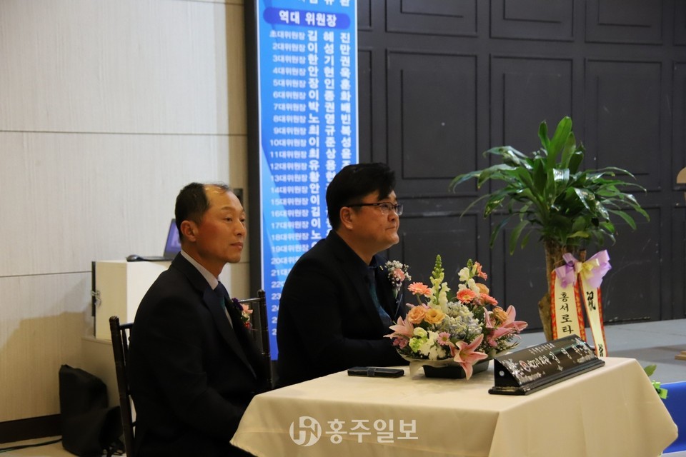 지난 16일 저녁 리첸시아 웨딩홀에서 ‘홍주청소년선도회 제27·28대 회장 이·취임식’이 열렸다. 이날 행사는 선도회원을 비롯해 홍문표 국회의원, 이종화 충남도의원 등 각종 내외빈이 참석한 가운데 개최됐다.