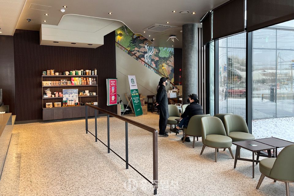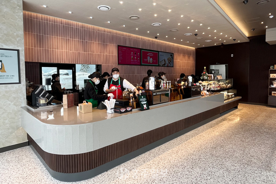 지난 14일 홍성여중 건너편 옛 SK 주유소 자리(홍성읍 대교리 221-1번지)에 새롭게 문을 연 스타벅스 충남홍성DT점(점장 정지원)은 드라이브스루 방식으로도 상품을 판매하며, 35석의 주차공간이 마련돼 있다. 매장은 2층으로 이뤄져 있고 거동이 불편한 고객은 엘리베이터를 이용하면 된다.