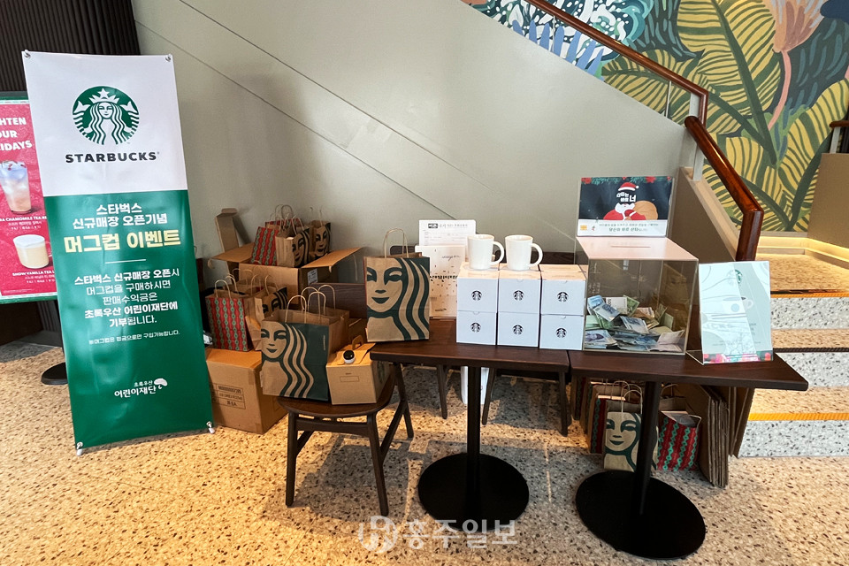 한편, 스타벅스 충남홍성DT점은 지난 19일 초록우산 어린이재단 충남지역본부(본부장 김승현)에 오픈기념 머그컵 판매 수익금 약 110만 원을 전달했다.