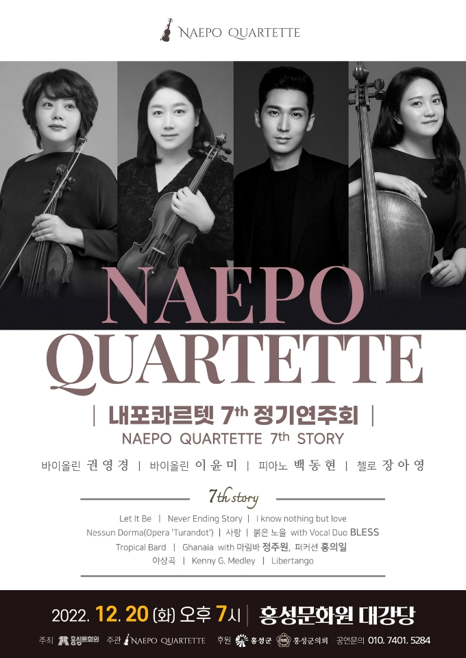 따뜻한 온기가 그리워지는 계절, 내포콰르텟이 오는 20일 저녁 7시 홍성문화원 대공연장에서 일곱 번째 정기연주회를 개최한다.