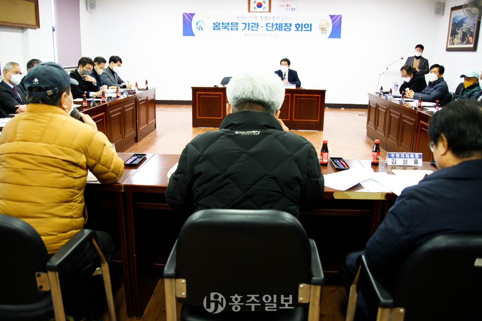 홍북읍 기관단체장회의가 21일 11시 홍북읍행정복지센터에서 열렸다. 이날 회의는 복성진 홍북읍장 등 약 20여 명의 홍북읍 기관, 단체장들이 참석했다.