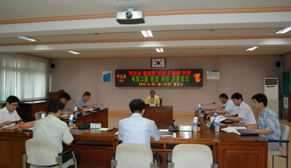 홍성군은 지난 27일 내포신도시 조성에 따른 원도심 공동화 문제 해결을 위한 실질적인 정책 발굴을 위해 워킹그룹(전문가 지원시스템) 운영 사전 자문회의를 가졌다.
