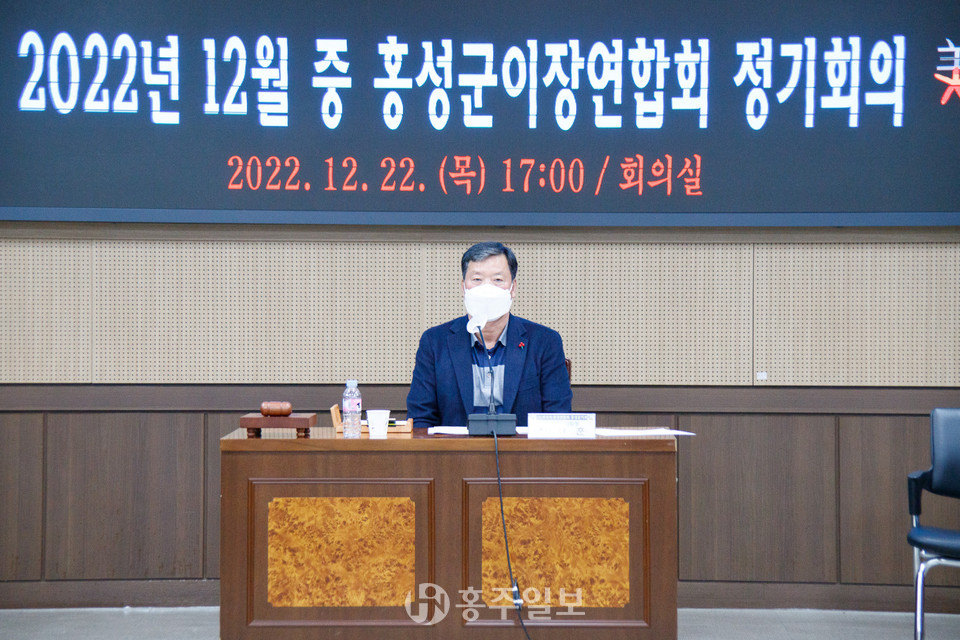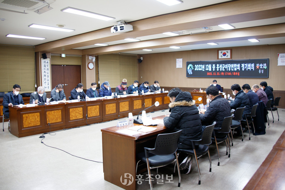 홍성군이장연합회가 2022년 12월 정기회의를 지난 22일 오후 5시 군청 회의실에서 진행했다. 이날 자리에는 장정훈 회장 등 각 읍·면 이장단 회장과 사무국장들이 참석했다.