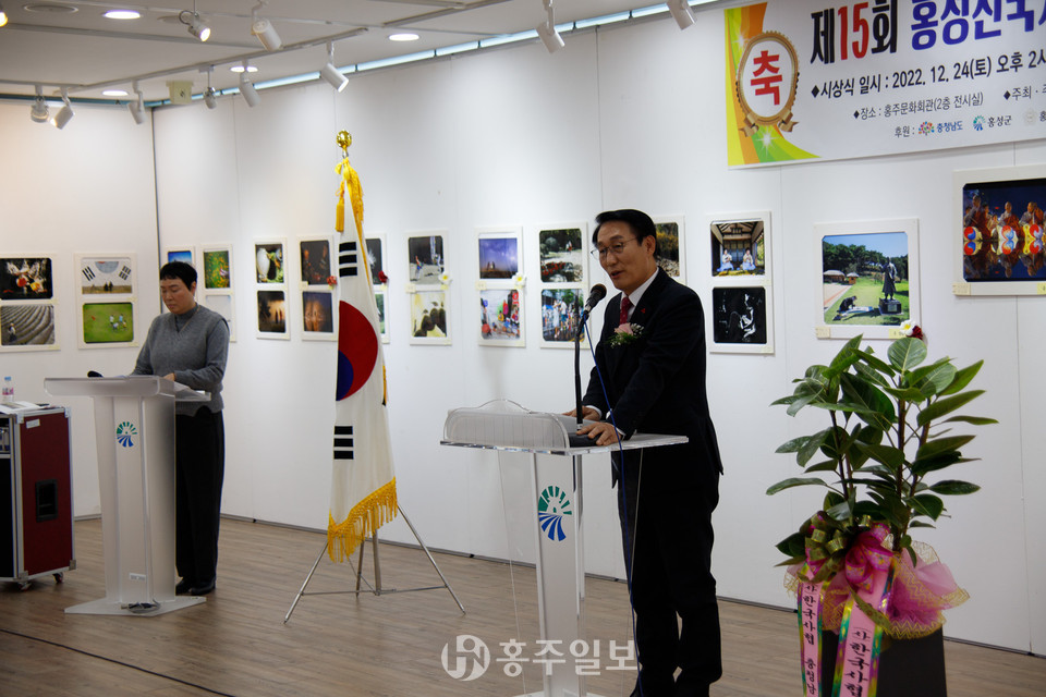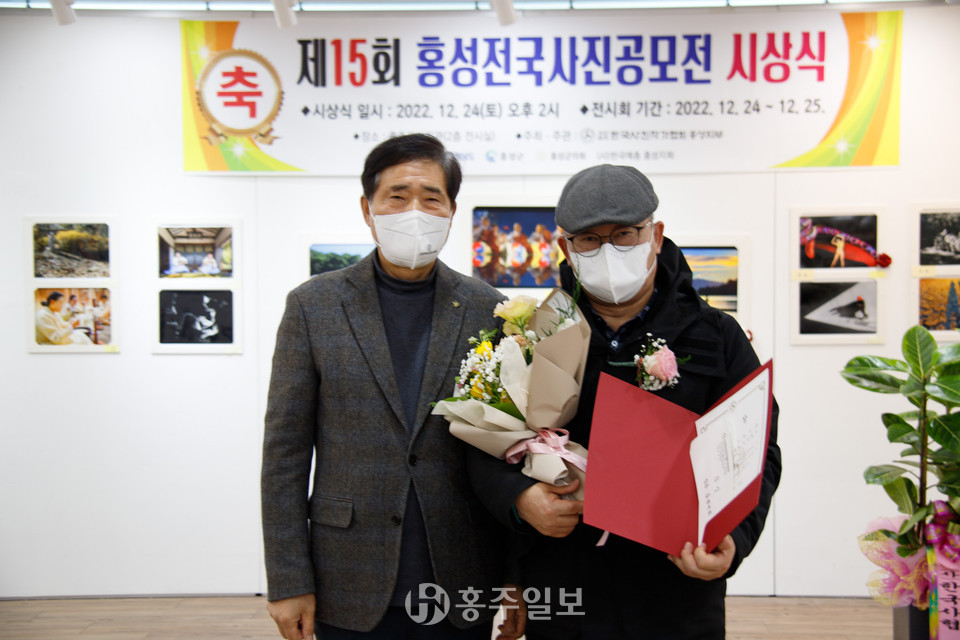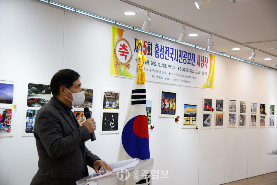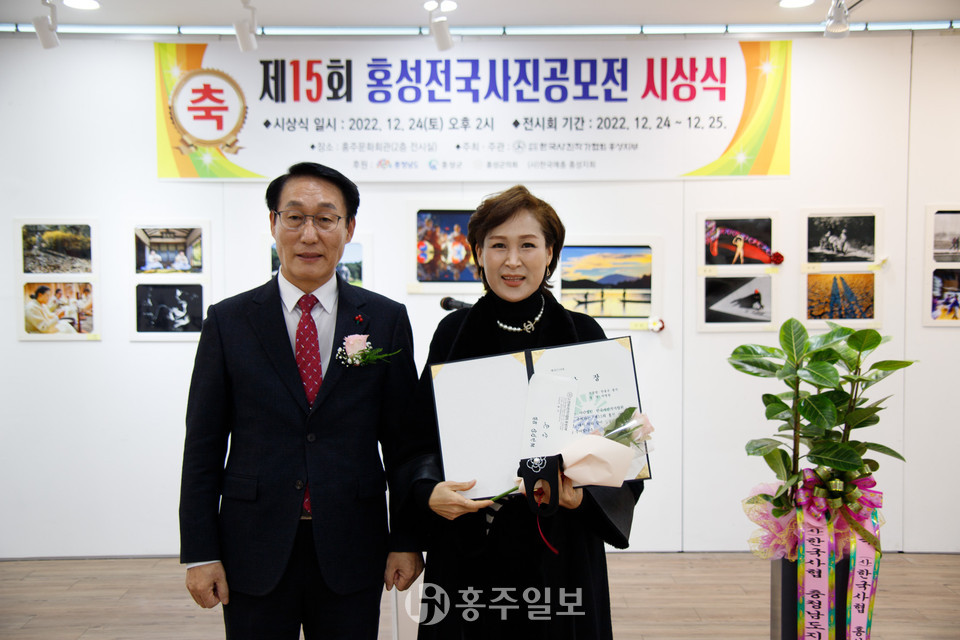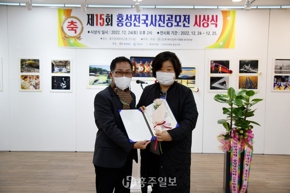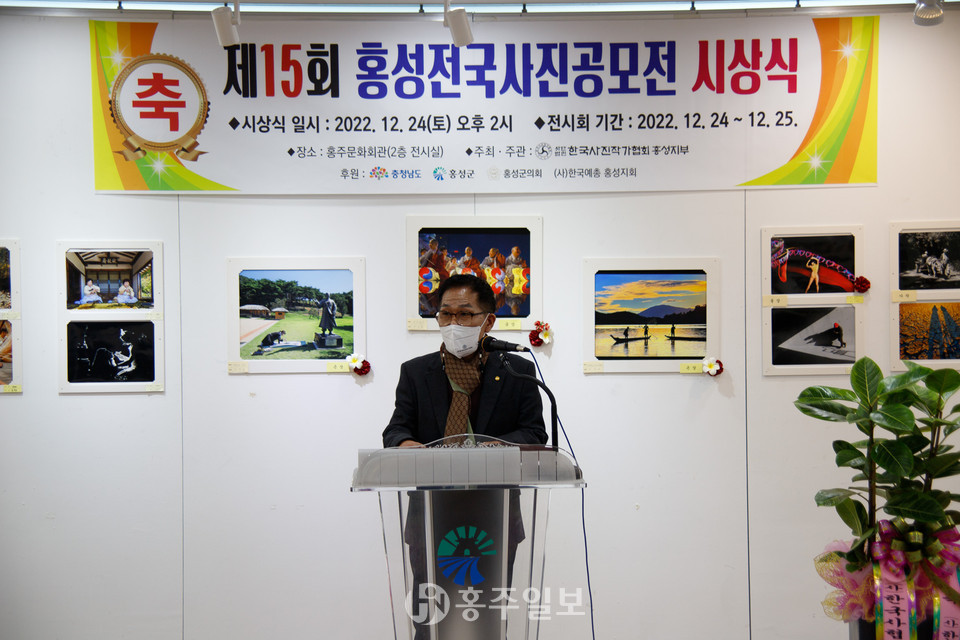 ‘제15회 홍성전국사진공모전’ 시상식이 크리스마스 전날인 24일 홍주문화회관 전시실에서 열렸다. 이날 행사에는 한국사진작가협회 홍성지부(지부장 이종석) 회원들은 물론 이용록 홍성군수, 최선경 홍성군의원, 이상헌 한국예총 홍성지회장 등도 참석했다.