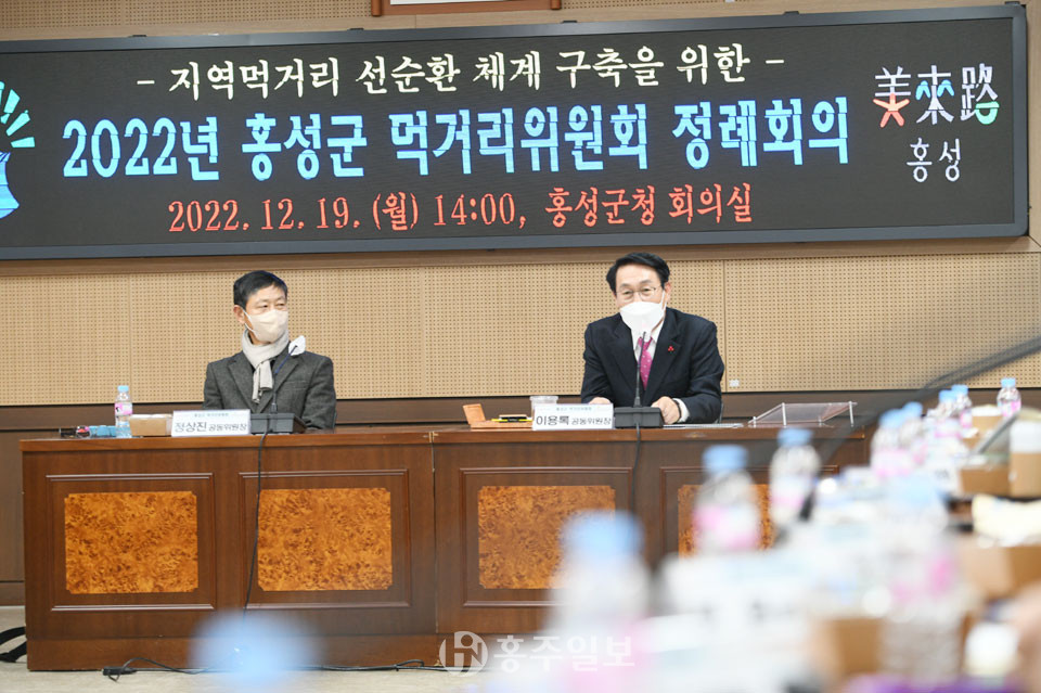충남 홍성군은 지난 19일 홍성군청 회의실에서 건강하고 안전한 먹거리의 보편적 가치를 실현하기 위한 민관 거버넌스인 홍성군 먹거리위원회 정례회의를 개최하였다.<사진>