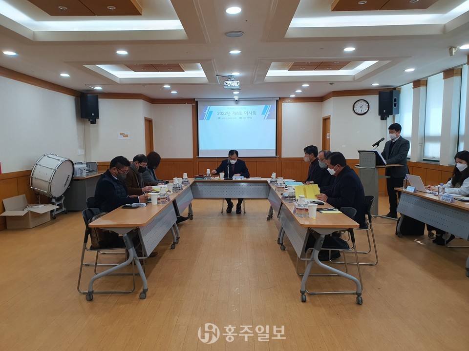 (재)홍성군청소년복지재단(이사장 정한율)이 지난 12월 28일 ‘2022년 제8회 이사회’를 개최했다. 이 날 자리에는 이사회 임원들과 함께 재단 사무국, 홍성군청소년수련관, 광천문화의 집, 홍성군청소년상담복지센터 관계자들이 참석했다.