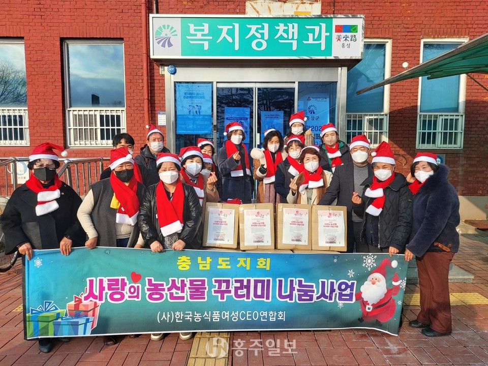 (사)한국농식품여성CEO연합회(회장 신세경) 충남도지회(지회장 이은경)에서 지난 29일 홍성군청을 방문해 사랑의 농산물 꾸러미(5kg, 45박스)를 기탁했다.