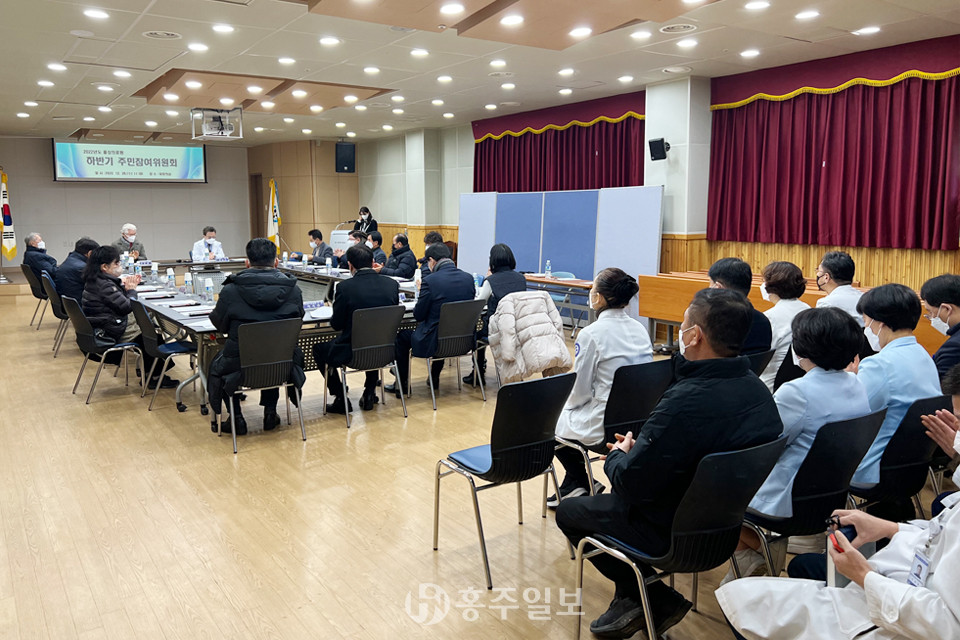 홍성의료원 주민참여위원회가 지난 28일 별관 대회의실에서 다양한 의견수렴을 통해 코로나19 이후 의료원 경영 정상화를 위한 ‘2022년도 주민참여위원회 하반기 정례회의’를 개최했다.<사진>