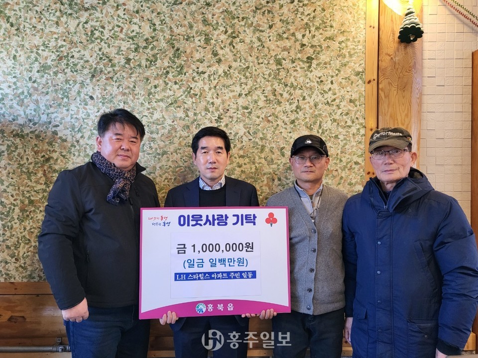 홍북읍 내포신도시 소재 LH 스타힐스 아파트 주민들이 지역의 소외된 이웃들을 위해 성금 일백만 원을 지난 3일 기탁했다.<사진>