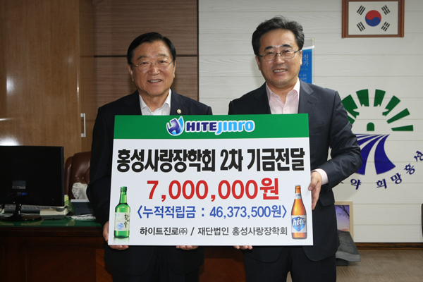하이트진로(주) (대표이사 이남수)는 지난 27일 장학금 700만원을 홍성사랑장학회에 기탁했다.