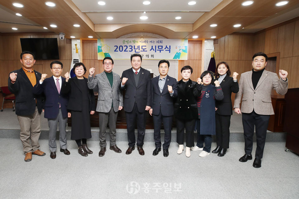 홍성군의회(의장 이선균)가 지난 2일 군의회 본회의장에서 ‘2023년 시무식’을 갖고 본격적인 의정활동에 돌입했다.