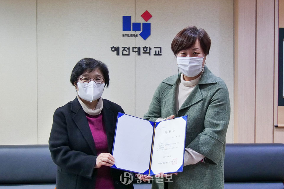 홍성군 유일의 장애어린이집인 느티나무어린이집(원장 편향희) 위탁 운영 기관으로 혜전대학교(총장 이혜숙)가 선정돼 지난해 12월 28일 편향희 원장 임용장 수여식이 거행됐다.<사진>