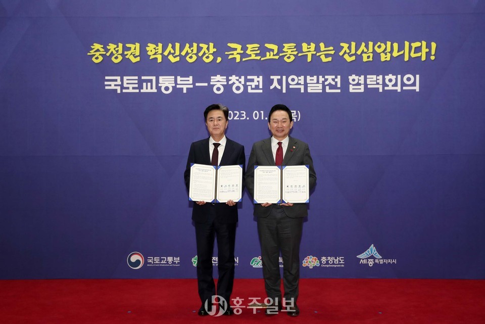 한편 충청남도, 대전광역시, 세종특별자치시, 충청북도와 국토교통부는 3대 추진전략 19개 과제를 담고 있는 '지역 균형발전 및 충청권 동반성장을 위한 상호협력 협약' 체결했다.