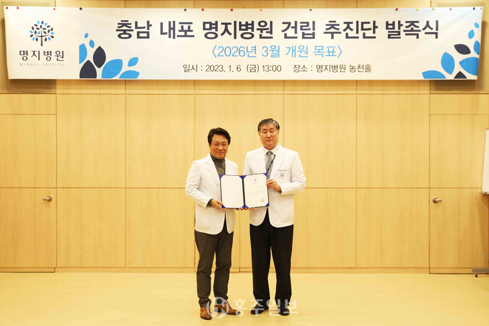 한편 충남 내포신도시에 건립 예정인 내포 명지병원은 3만 4214㎡ 부지에 연면적 5만 6198㎡, 525병상(급성기 350·재활요양 175) 규모로 건립된다. 27개 진료과에 중증응급·심뇌혈관 등 전문진료센터를 설치, 전문의 94명·간호사 414명을 포함한 총 857명의 전문 의료인력을 운영할 계획이다.