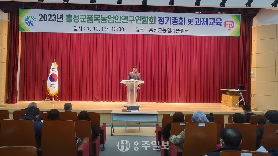 홍성군품목농업인연구연합회(회장 이병완)의 2023년 정기총회가 지난 10일 홍성군농업기술센터 대강당에서 개최됐다.