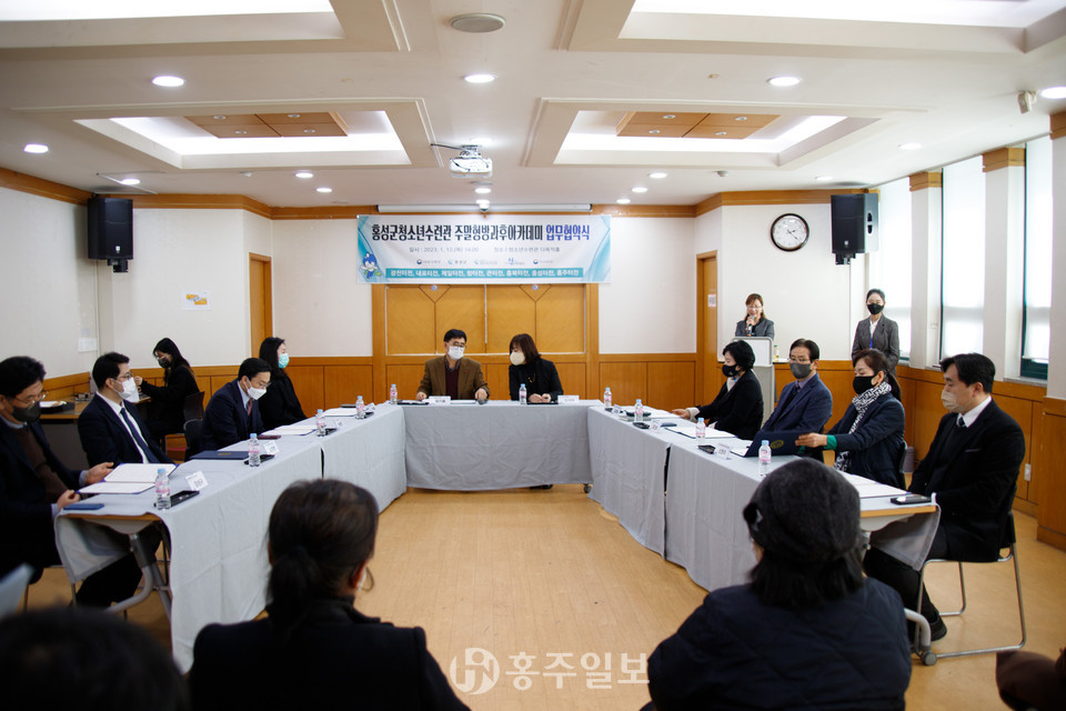홍성청소년수련관은 지난 12일 1층 다목적실에서 주말형방과후아카데미를 운영하는 광천감리교회(담임목사 이필준), 내포사랑의교회(담임목사 한상만), 홍성제일감리교회(담임목사 최정일), 참소망교회(담임목사 강성규), 큰사랑교회(담임목사 하태원), 평안하고든든한교회(담임목사 오종설), 홍성중학교(교장 김선호) 등과 업무협약 맺었다. 이번 협약은 주말을 활용한 방과후 프로그램을 이용해 청소년의 건강한 성장 발달 및 체험활동 지원을 위한 공동 업무협약이다.