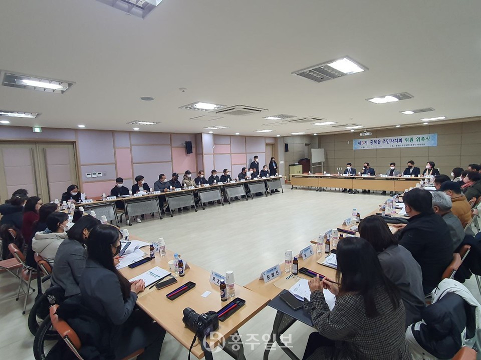 홍북읍주민자치회(이임회장 김선홍·취임회장 정윤)가 지난 16일 홍북읍주민복합지원센터 다목적실에서 정기회의를 개최했다. 이 자리에서 제3기 주민자치회 위원 위촉식을 갖고 정윤 씨를 신임 주민자치회장으로 선출했다.<사진>