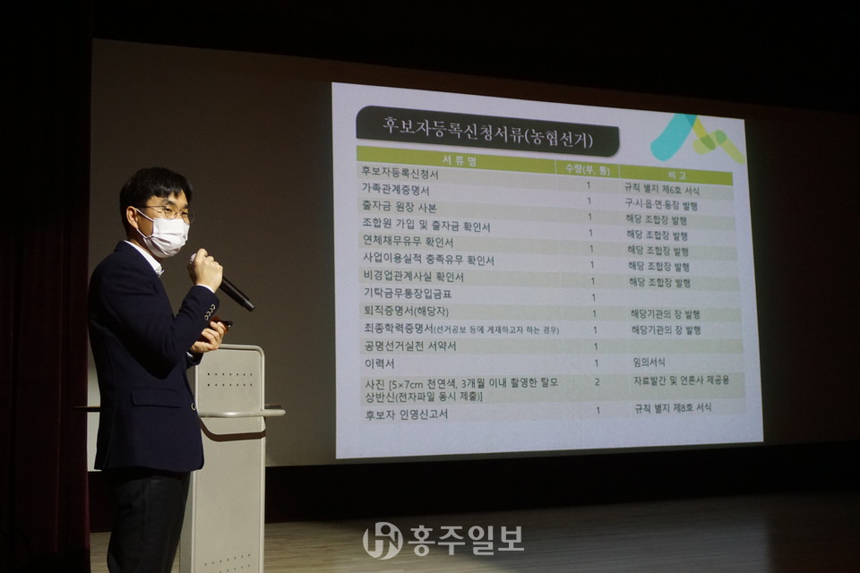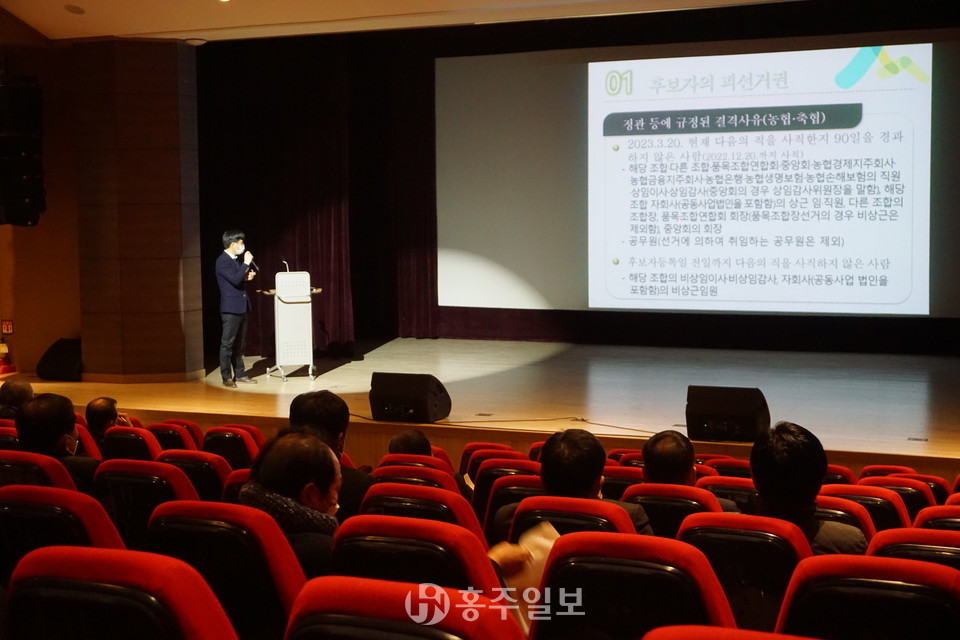 홍성군선거관리위원회(위원장 도형석)가 오늘 오후 2시부터 홍성문화원에서 선거 예비 입후보자와 관계자 등이 참석한 가운데 ‘제3회 전국동시조합장선거 입후보안내 설명회’를 개최해 현재 진행 중이다.<사진>