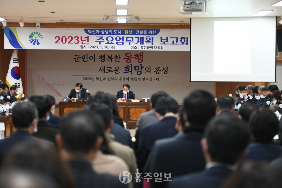 홍성군은 민선8기 주요현안업무와 2023년 군정 운영을 위한 5대 추진전략에 발맞춰 부서에서 중점적으로 추진할 업무를 논의하는 ‘2023년 주요업무계획 보고회’를 지난 18일 대강당에서 개최했다.<사진>