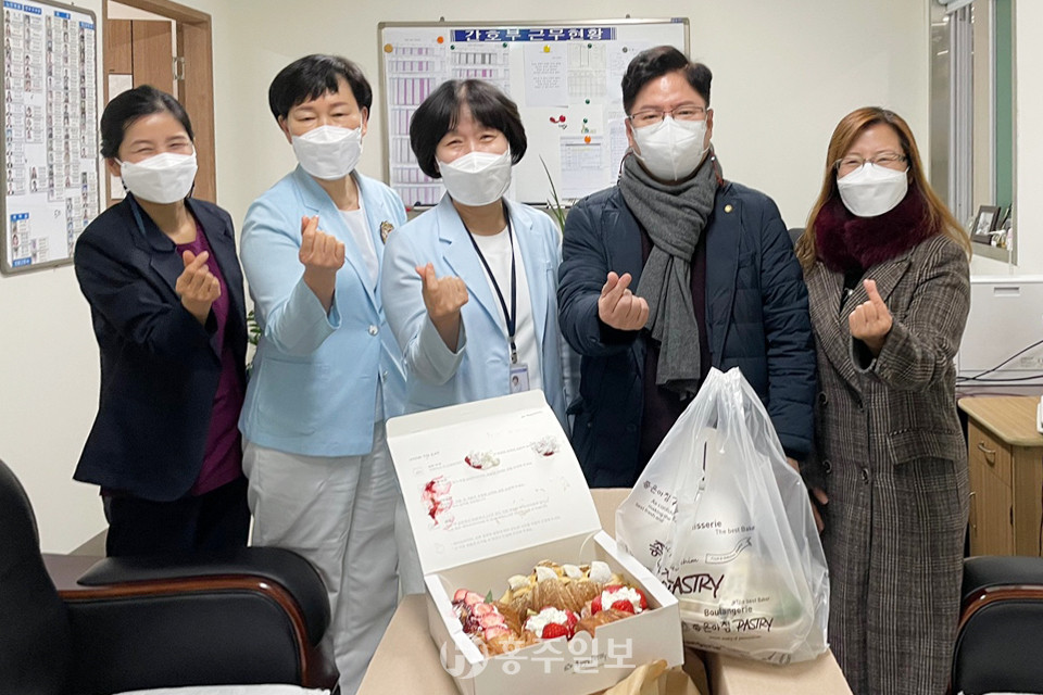 이날 사랑의 빵을 전달한 정윤 이사장은 “홍성군 소재 가장 큰 병원으로서 홍성의료원이 감염병 예방을 위해 최선을 다하는 모습에 감사한 마음을 담아 전달하게 됐다”며 “공공의료를 위해 노력하는 간호사를 비롯한 모든 의료원 종사자 분들께 진심으로 고맙다”고 말했다.