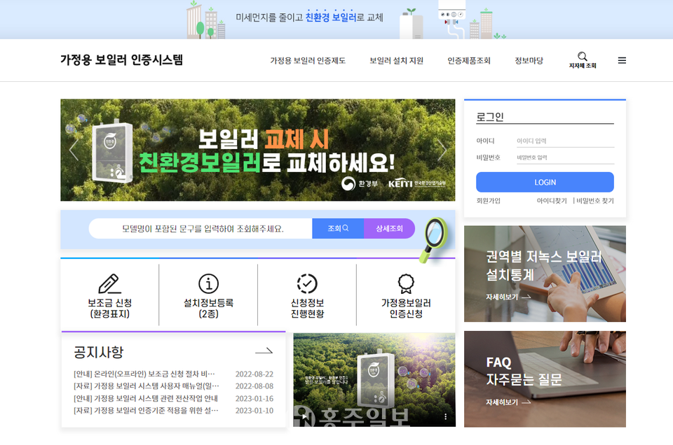 상세한 사항은 홍성군청 홈페이지 내 ‘공고/고시’란에서 ‘가정용 저녹스보일러 설치 지원사업’을 검색해 확인하면 된다.