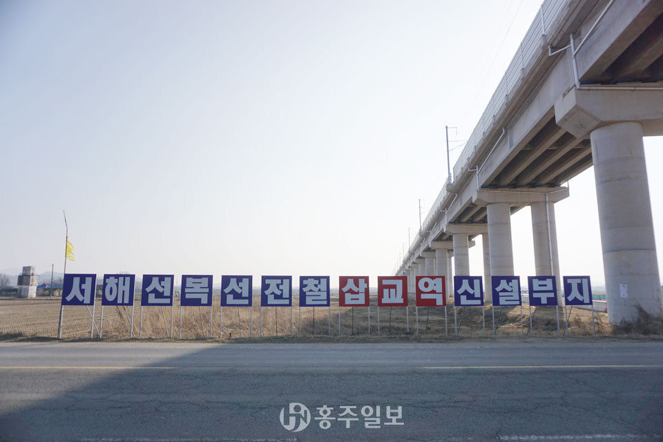 홍성~경기 화성 송산까지 90㎞를 연결하는 서해선 복선전철 철도 건설사업은 총공사비 4조 1388억 원을 투입해 지난 2015년 5월 착공, 2022년 완공 예정이었다. 하지만 노선 변경, 공사 지연 등으로 인해 현재 공정률 87%를 보이며 오는 2024년 개통될 전망이다. 서해선 복선전철은 향후 신안산선과 연결되면 홍성에서 서울까지 1시간 이내에 진입이 가능할 것으로 예상된다. 서해선 복선전철 ‘삽교역’이 신설되면 충남도청내포신도시의 관문역 기능을 할 것으로 기대되면서 지역주민들의 관심이 높은 최대의 현안사업이다.