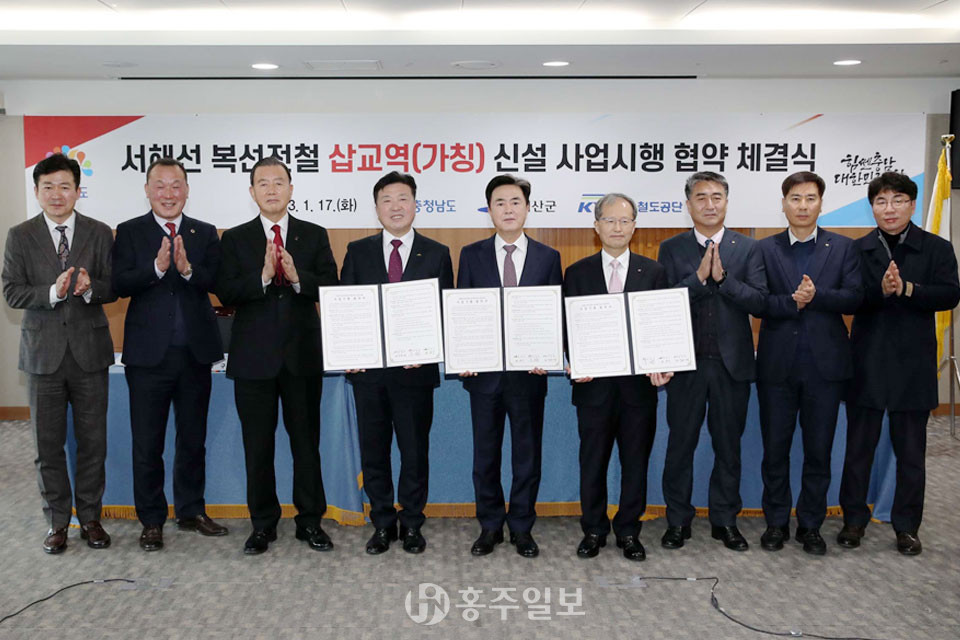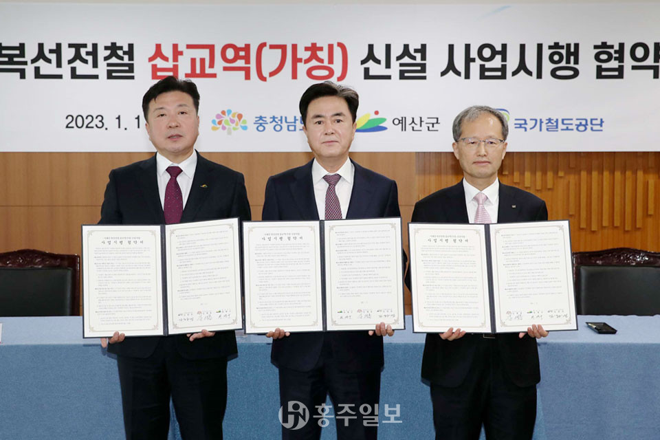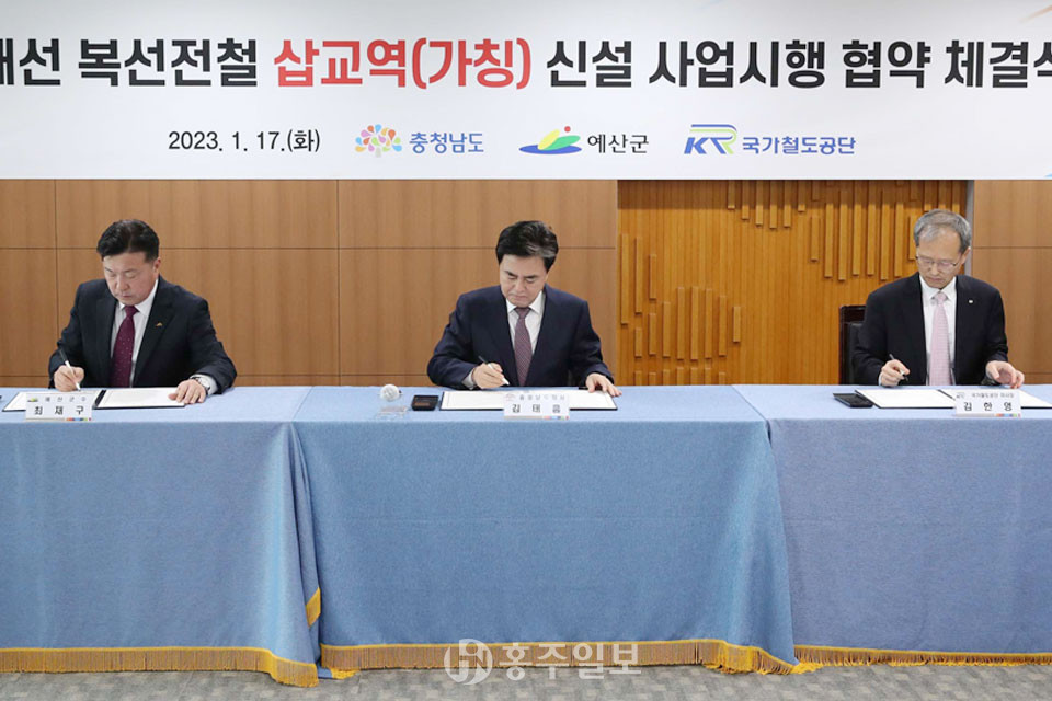 이에 따라 충청남도가 200억 원을 부담하기로 하면서 예산군이 부담해야 할 금액은 70여억 원으로 줄어들게 됐다. 지난 17일에는 충남도청에서 삽교역사 신설에 따른 철도시설공단, 충청남도, 예산군이 시행협약을 체결했다.