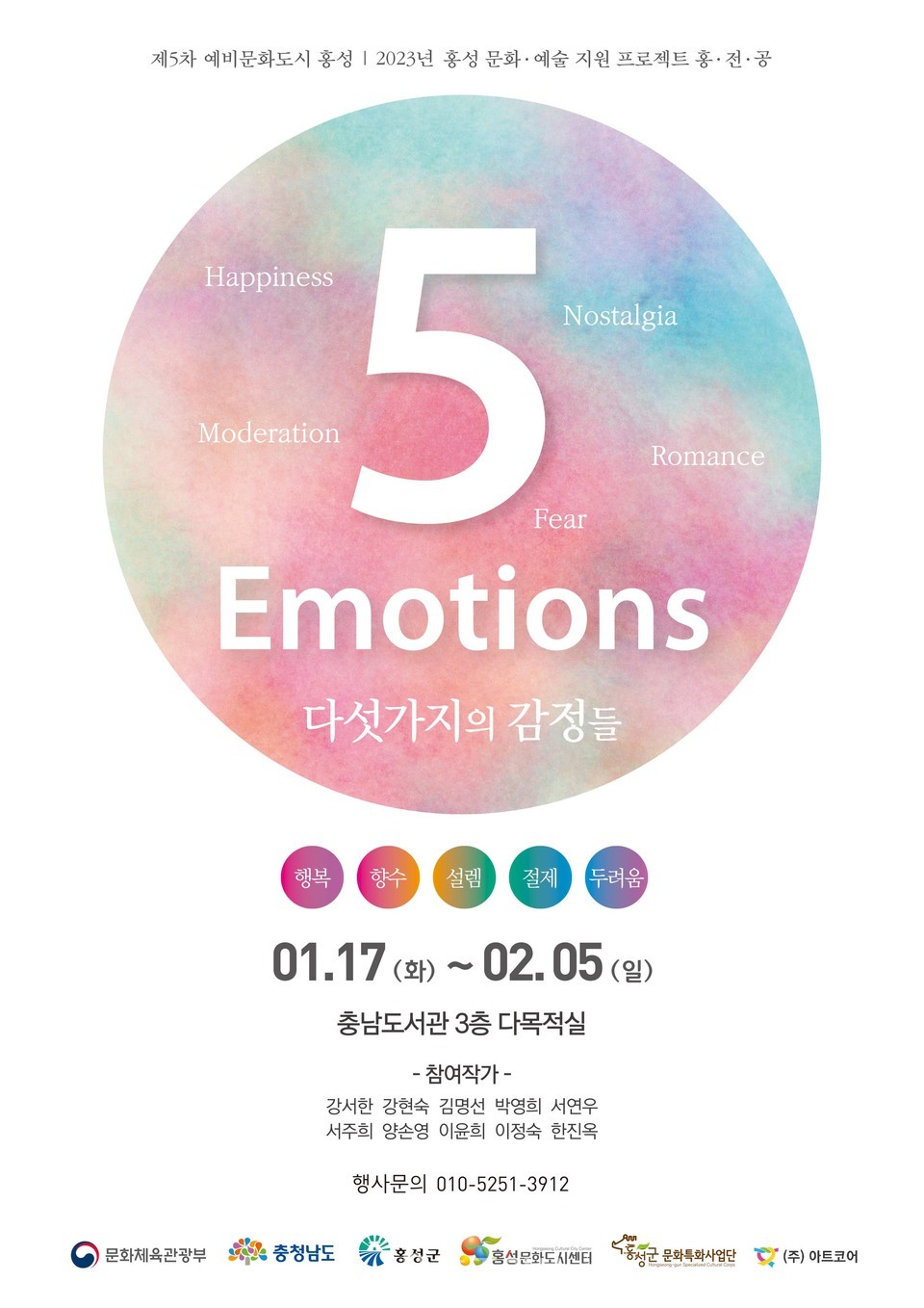 홍성문화도시센터·홍성군문화특화사업단의 ‘2023년 홍성 문화·예술 지원 프로젝트 홍·전·공 사업’에 선정된 ‘5 Emotions’ 어반드로잉 전시회가 오는 2월 5일까지 충남도서관 2층 다목적실에서 개최된다.