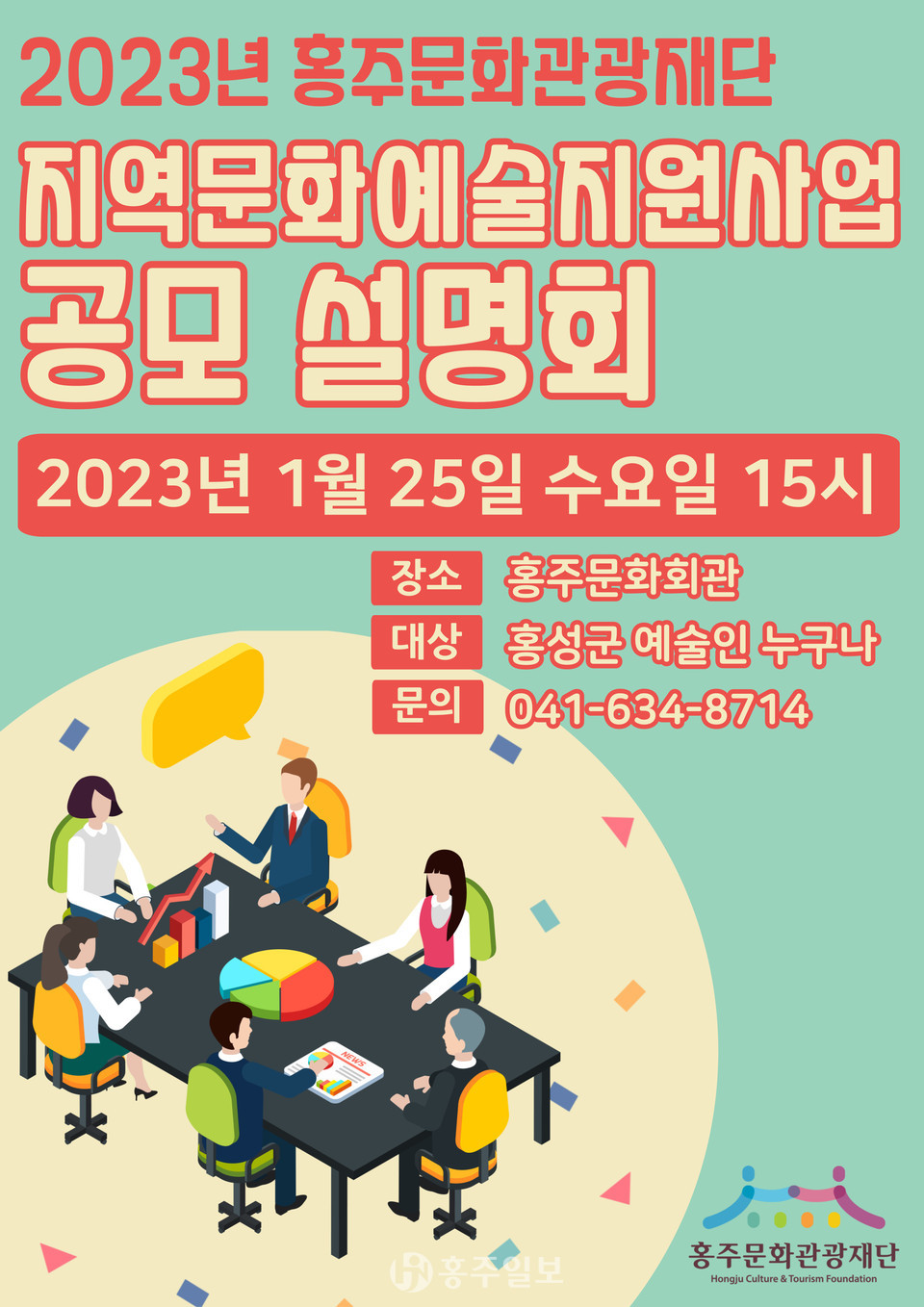 (재)홍주문화관광재단(대표이사 최건환)은 올해 공모는 홍성군에 위치한 단체와 개인을 대상으로 추진하며, 관내에서 추진할 수 있는 문화·예술사업(내포신도시 허용)에 대해 지원하고, 공모사업 접수는 다음달 9일 오후 5시까지 전자우편(hongju14@hongju.or.kr)을 통해 서류 접수를 진행한다.
