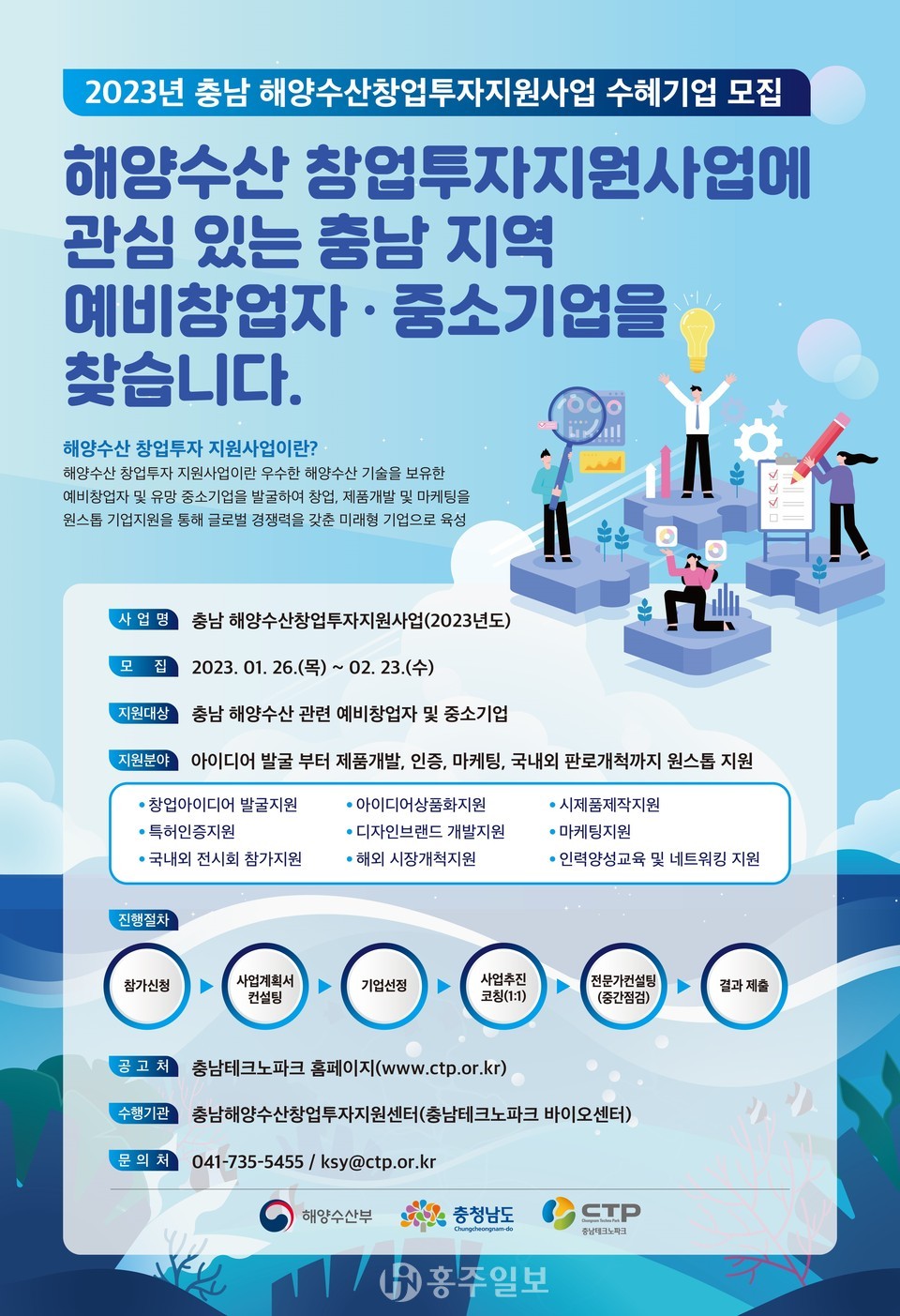 충남도는 다음달 1일부터 23일까지 ‘해양수산 창업 투자 지원사업’ 신청을 받는다.