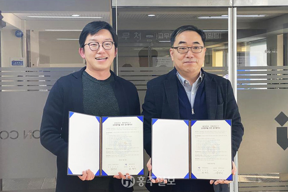 혜전대학교(총장 이혜숙) 고등직업교육거점지구(HiVE)센터는 31일 혜전대학교 HiVE센터에서 청년 기업 ‘초록코끼리(대표 김만이)’와 지역 발전을 위한 업무협약을 체결했다.<사진>
