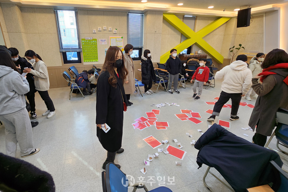 이번 체험활동은 1일 차 친구와 나를 만나는 프로그램이 진행됐고, 2일 차 눈 내린 호서대 운동장에서 축구를 하며 건강을 챙기고, 3일 차엔 바닥의 큰 카드를 뒤집으며 미션을 수행하는 시간으로 친구들과 협동 놀이를 하며 알찬 하루를 보냈다.<사진>