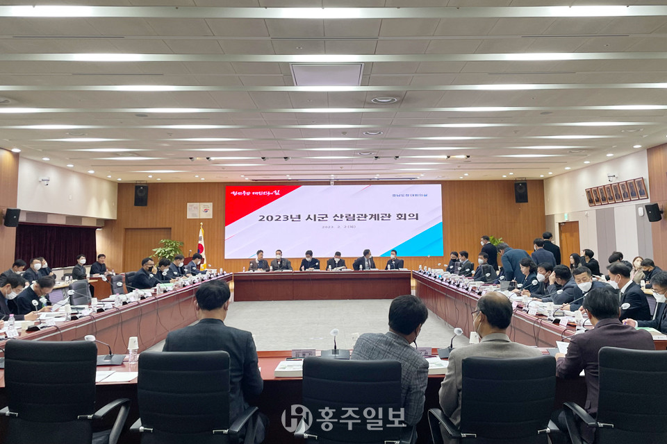 충남도는 지난 2일 도청 대회의실에서 산림사업의 성공적인 추진을 위한 ‘2023년 시군 산림관계관 회의’를 개최했다.<사진> 이번 회의는 올해 산림사업 내용을 공유하고 성과 제고 방안을 모색하는 자리로 마련했다.