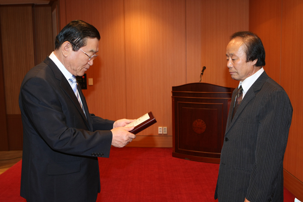 홍성군은 지난 4일 홍주성역사관에 부보상 유물을 기탁한 부보상 한상인 접장(69, 홍성읍·사진 오른쪽)에 감사패를 수여했다.