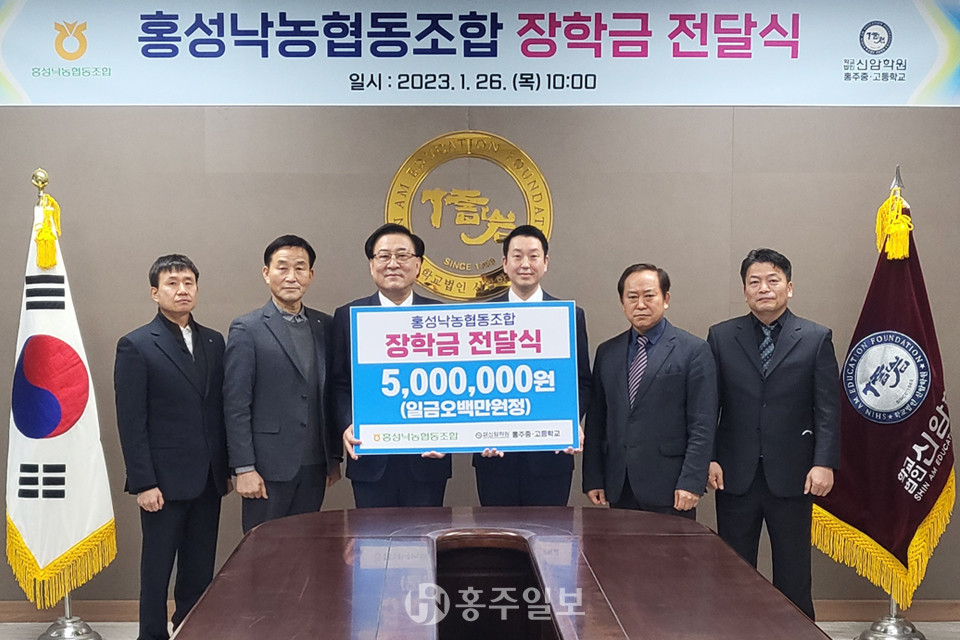 홍성낙농협동조합(조합장 최기생)이 지난달 26일 학교법인 신암학원(홍주중·고등학교)을 방문해 인재 육성을 위해 사용해달라며 장학금 500만 원을 기탁했다.<사진>