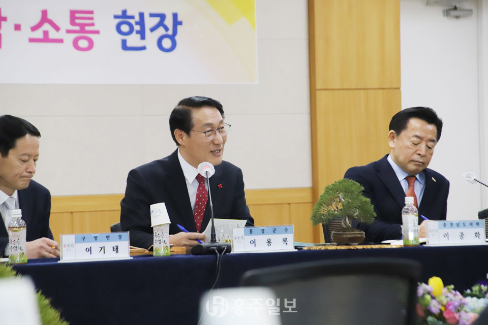 ‘구항면 이동 군정 설명회’가 지난 3일 구항면행정복지센터 2층 회의실에서 열렸다. 이 날 설명회에는 구항면민들과 이용록 홍성군수를 비롯해 이종화, 이상근 충남도의원, 김덕배 이정희 홍성군의원 등이 참여 면민들의 의견을 경청했다.