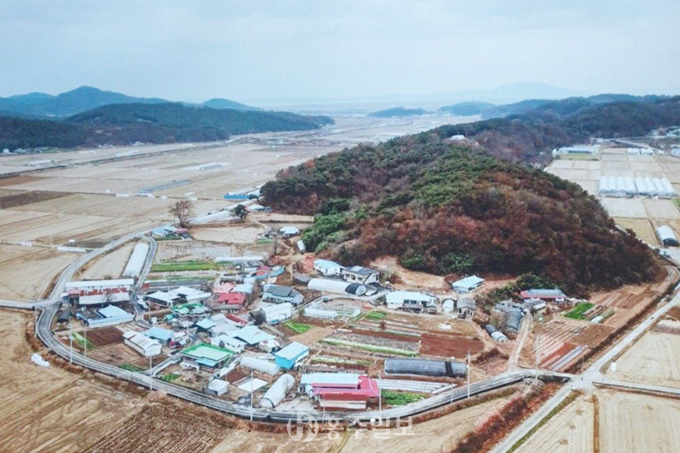 홍성지역에도 한반도를 꼭 닮은 지형이 있다. 사실 사람들도 잘 알지 못했다. 사람들은 ‘벚재산’라고도 했지만 그저 편하게 ‘뒷산’이라고 불렀다. 몇 십년을 살던 어르신들도 알지 못했던 것을 지난해 드론으로 촬영해서 보니 영락없는 한반도의 모양을 쏙 빼닮았다.