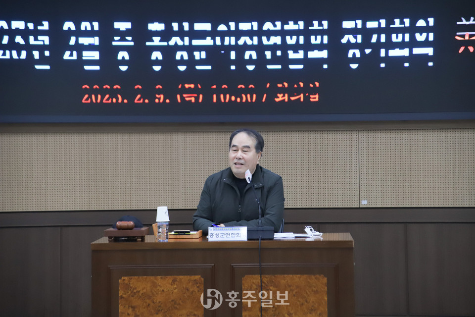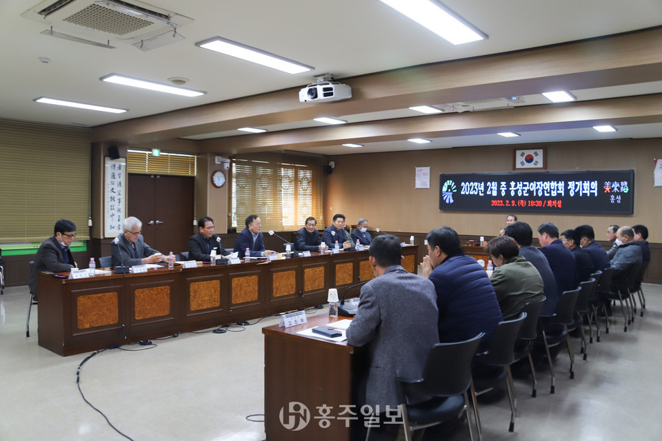 ‘2023년 2월 중 홍성군 이장협의회 연합회 정기회의’가 9일 오전 10시 30분부터 진행됐다. 이날 회의에서 연합회장으로 홍성은 홍북읍이장협의회장이 선출됐다. 그리고 부회장으로 박창덕 광천읍이장협의회장, 이기수 금마면이장협의회장, 사무국장은 이종광 홍북읍이장협의회 사무국장이 됐다. 감사는 홍남순 홍성읍이장협의회 사무국장, 문기환 갈산면이장협의회 사무국장이 선출됐다.