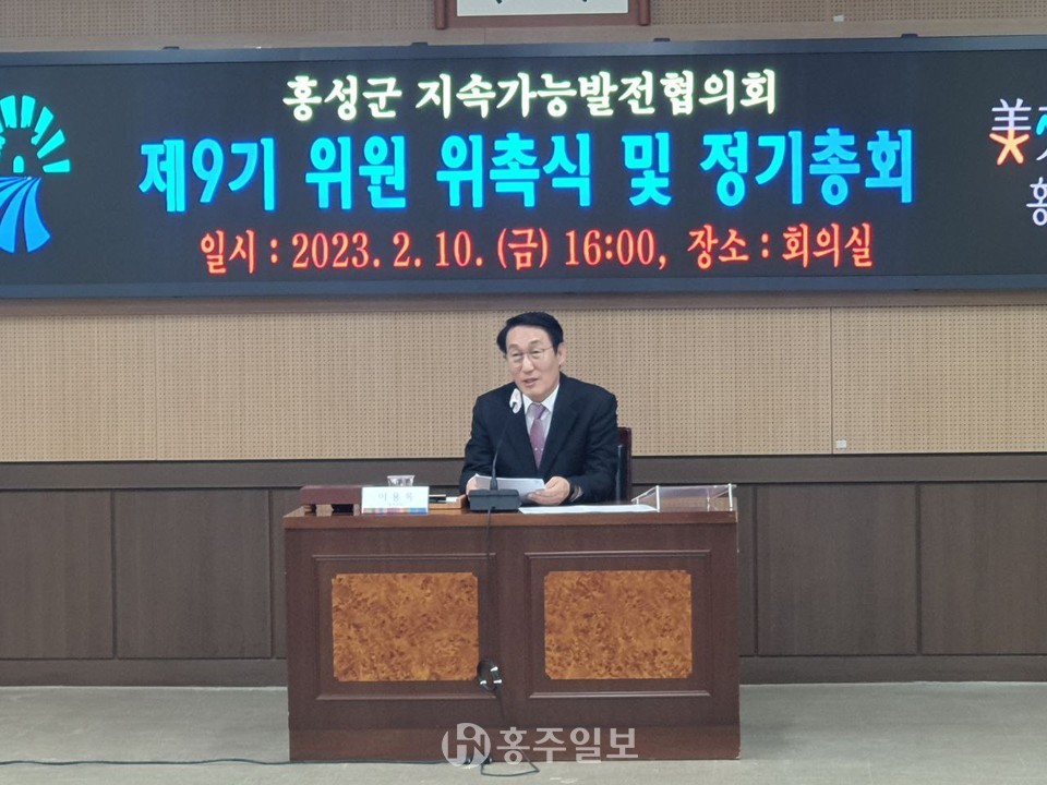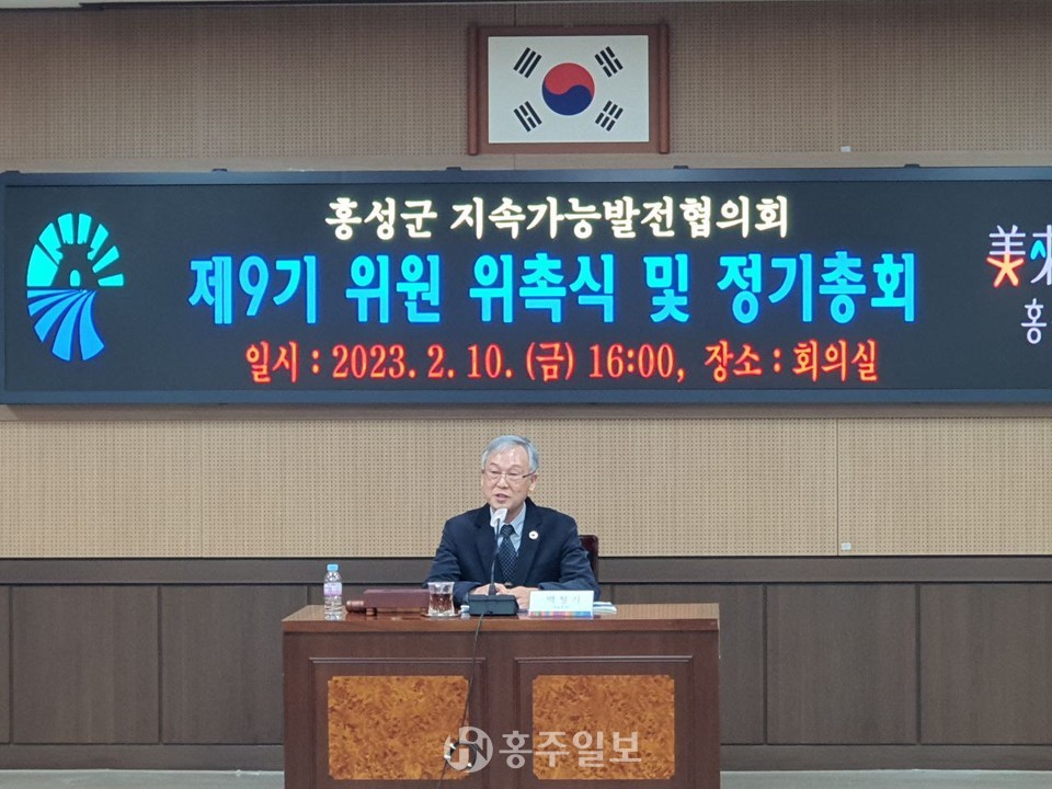 홍성지속가능발전협의회(회장 백청기)의 ‘제9기 위원 위촉식 및 정기 총회’가 지난 10일 오후 4시 홍성군청 회의실에서 개최됐다. 이 자리에서 이용록 홍성군수는 백청기 회장을 중심으로 하는 지속가능한 발전을 위해 노력하는 모습을 치하한 뒤 “요즘 기후위기에 따라 여러 가지 어려움이 있다. 홍성군에서도 ‘탄소중립’을 만들기 위해 조례를 제정하려고 준비 중이다”라며 ‘탄소중립’에 대해 강한 의지를 피력했다.